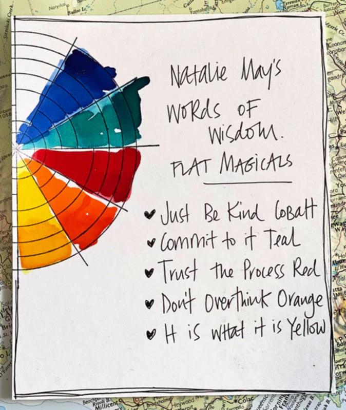 OverzichtThe Words of Wisdom Flat Magicals by Natalie May includes a perfect set of primary colors: Just Be Kind Cobalt; Don't Overthink It Orange; It Is What It Is Yellow; Trust the Process Red; Commit To It Teal.